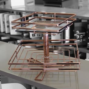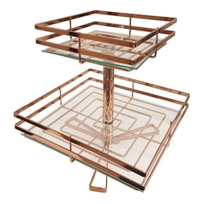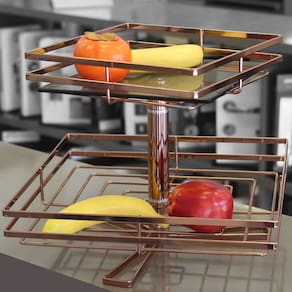 Fruteira Quadrada Dupla Piatina Giratória - Cobre com Vidro Transparente Ótima para Organizar suas Frutas e ao mesmo tempo dar Requinte ao seu Ambiente Medidas: Um Cesto com 28 x 28cm e o outro Cesto com 38 x 38cm Altura da Fruteira: 32cm Material: Aço Acabamento: Cobre Cor dos Vidros: Transparente Fabricante: Giosul Garantia: 3 Meses. Marca: Não Informado