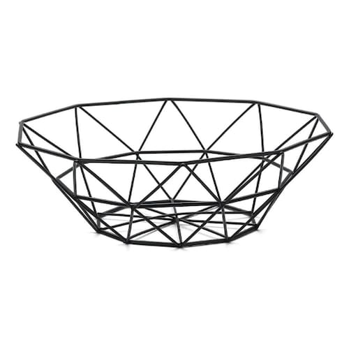 Fruteira de Mesa Redonda Metal Preta 27cm Aramada A fruteira de mesa é um organizador para armazenamento de frutas, legumes ou pães em balcões e mesas. Fabricada em metal com acabamento na cor preta, possui estrutura aramada que permite a circulação de ar entre os alimentos.O produto apresenta formato redondo com diâmetro de 27 cm e altura de 9 cm. Sua construção metálica oferece estabilidade e resistência para o uso diário em ambientes domésticos. O design aberto facilita a visualização e o acesso aos itens armazenados. Características e Ajustes:Aplicação: Uso sobre superfícies planas (mesas e bancadas) Limitação: Não indicada para contato direto com produtos químicos corrosivos. Manutenção: Limpeza deve ser realizada com pano seco ou levemente umedecido.