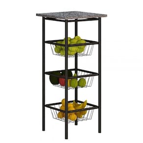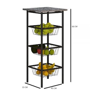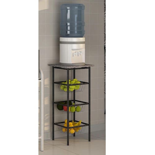 A Fruteira Havana tem 3 cestos fundo e ainda um tampo de granito que pode receber algum eletrodoméstico ou um tigela com mais frutas ou legumes. Super prática, né?