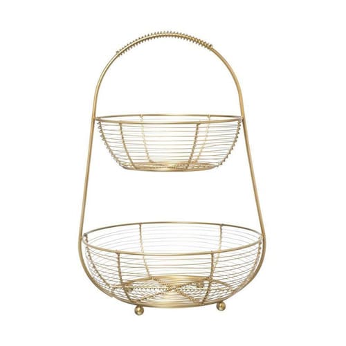 Armazene suas frutas de forma prática, com a Fruteira Aurum Doble! Ela é funcional e conta com 2 andares ampliando sua capacidade de armazenamento e separação dos alimentos. Seu design aramado mantém as frutas em temperatura ambiente, sem abafá-las evitando desperdício. Possui sapatas para proteger as superfícies.