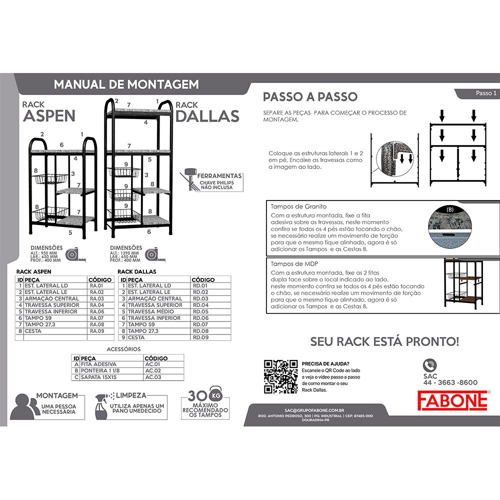 Fabricada em aço carbono com pintura epóxi eletrostática, a fruteira oferece resistência contra oxidação e durabilidade no uso diário. Os tampos em Granito garantem um acabamento sofisticado e fácil de limpar, tornando o móvel ainda mais prático.