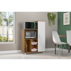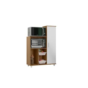Especificações do Produto: • Largura: 91,5 cm• Altura: 133 cm• Profundidade: 36 cm• Estilo: Moderno• Material: MDP de alta qualidade• Quantidade de Portas: 1• Prateleiras: 2• Pés: 4• Suporte para frutas em PVC• Porta articulada• Espaço para forno micro-ondas