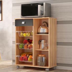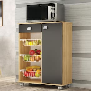 FRUTEIRA | A Fruteira Natasha possui 1 gaveta com corrediças metálicas, 1 portas com prateleira interna e 3 cestos metálicos feitos com pintura eletrostática que não encardem e não enferrujam, fáceis de limpar. Ideal para armazenamento de frutas e legumes, possui rodízios para uma melhor movimentação e facilidade de limpeza. Pode ser utilizado para áreas de cozinha. Esse móvel é ideal para pessoas que gostam de organização. Produzido em MDP conta com um design sofisticado irá amonizar com seu ambiente de casa. Além disso, o produto possui uma fácil montagem.
