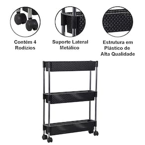 Feito com material resistente e estrutura reforçada, o carrinho garante estabilidade mesmo cheio, permitindo organizar seu espaço com muito mais eficiência. As rodas facilitam o deslocamento, tornando sua rotina mais dinâmica e organizada.