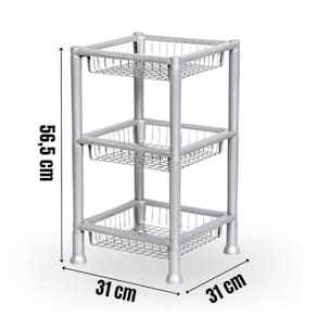 - cestos empilháveis até 3 andares e desmontáveis; - forma fácil e rápida de organizar suas coisas em qualquer cômodo da casa, principalmente na cozinha; - altura máxima de 56cm com os 3 andares; - material de qualidade, ao desmontar, vira uma peça compacta; -fácil higienização; -suporta até 3 kg por cesto; -produto resistente, fácil montagem e prático para o dia a dia. Especificações e ficha técnica - material: plástico - cor: cinza - quadrada -medidas: 56x31x31cm itens inclusos - 01 cesto organizador empilhável 3 andares quadrado