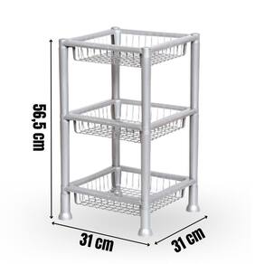 - cestos empilháveis até 3 andares e desmontáveis; - forma fácil e rápida de organizar suas coisas em qualquer cômodo da casa, principalmente na cozinha; - altura máxima de 56cm com os 3 andares; - material de qualidade, ao desmontar, vira uma peça compacta; -fácil higienização; -suporta até 3 kg por cesto; -produto resistente, fácil montagem e prático para o dia a dia. Especificações e ficha técnica - material: plástico - cor: cinza - quadrada -medidas: 56x31x31cm itens inclusos - 01 cesto organizador empilhável 3 andares quadrado