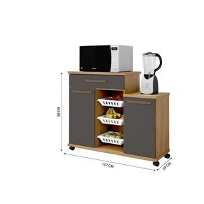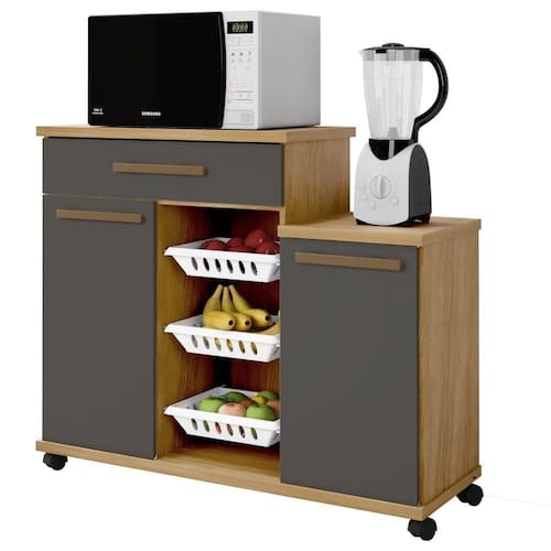 Fruteira Teresina Arte Móveis 2 Portas 1 Gaveta 3 Cestos Cinamomo/grafite Com um design versátil e pratico a Fruteira Teresina vai trazer mais organização e harmonia a sua cozinha. Ela conta com 3 cestos removíveis, 2 portas, 1 gaveta, e rodízios para auxilia-lo. PRODUTO COM GAVETAS Escolha qual cor combina melhor com seu estilo!