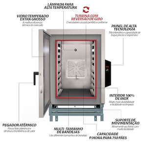 - Turbina com reversão de giro, que possibilita um assamento uniforme;