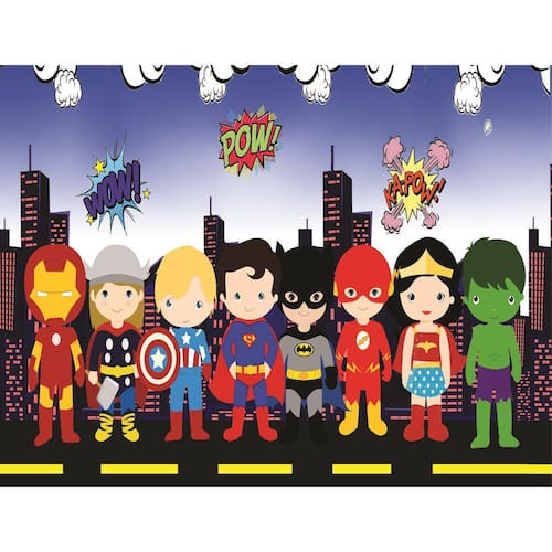 Fundo Fotográfico Em Tecido Super Heróis Baby 2,80X1,50