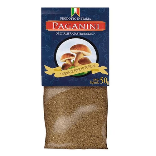 Funghi Italiano Porcini Paganini Em Pó 50G A Farinha de Funghi realça o sabor dos ingredientes nos pratos e também pode ser usada para empanar carnes e aves. A diferença dela para o funghi porcini seco é que ela cozinha mais rápido e pode ser utilizada crua. Para deixar a polenta ou o risoto ainda mais gostoso, experimente acrescentar uma colher de farinha de funghi quando a receita estiver quase pronta. País: Itália Marca: Paganini Peso Líquido: 50g Ingredientes: Cogumelos moídos NÃO CONTÉM GLÚTEN Ean: 7898152996684
