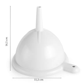 Funil plástico com 15 cm de diâmetro. É produzido em material atóxico e livre de BPA.Material: polipropilenoComprimento: 18,5 cm / Largura: 15,2 cm / Altura: 14,5 cm