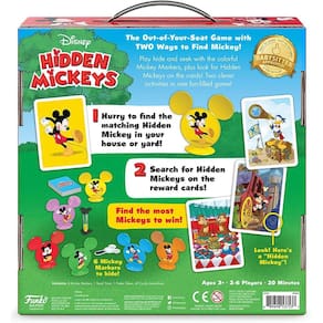 ""Produto internacional. Os impostos estão incluídos. O cliente não precisa pagar impostos; caso o faça, não será reembolsado.""O jogo fora do seu lugar com duas maneiras de encontrar mickey! Brinque de esconde-esconde com os coloridos Marcadores do Mickey, além de procurar Mickeys Escondidos nas cartas! Duas atividades inteligentes em um jogo cheio de diversão! Por sua vez, vire um cartão da pilha. Se você virar um cartão Mickey, um jogador corre para encontrar o correspondente Mickey Marker escondido na casa ou quintal! Traga-o de volta a tempo de marcar um cartão! Uma vez que todos os Marcadores Mickey foram encontrados, procure mickeys escondidos em seus cartões de recompensa! Encontre o máximo de Mickeys para ganhar!
