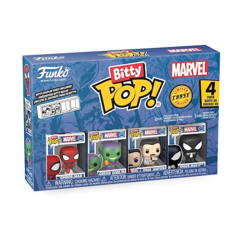 Funko Pop! Bitty: Homem-Aranha – Homem-Aranha, Duende Verde, J Jonah Jameson e Boneco Mystery Chase – 2,2 cm – Colecionável da Marvel Comics – Prateleira empilhável incluída – Ideia de presente