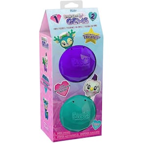 ""Produto internacional. Os impostos estão incluídos. O cliente não precisa pagar impostos; caso o faça, não será reembolsado.""SNAPSIES™ estão de volta, e eles estão trazendo algo brilhante para a festa! Os emocionantes colecionáveis cápsula da Funko estão disponíveis neste emocionante SNAPSIES GEMS™ 2-Pack, que inclui os novos personagens Ivy Shimmer e Lilac Brilliance! SNAPSIES GEMS™ combinar novos animais com quatro novos acessórios de gema brilhante! A patente da Funko pendente de tecnologia snap permite que você jogue do seu jeito! Misture e combine, crie em um snap! As figuras de vinil variam em tamanho dependendo dos caracteres/partes combinados; a altura média é de aproximadamente 2,5 polegadas de altura. CRIE EM UM SNAP! Snapsies misturam e combinam roupas, acessórios e muito mais para combinações intermináveis - o que você vai criar? Cada cápsula inclui: 2 Faces, 1 Cabeça, 1 Corpo, 2 Bundas, 5 acessórios, 1 folha de adesivo e 1 checklist. Com tecnologia snap para criar novos personagens. Uma nova variedade de números para coletar.
