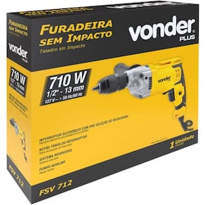 Possui interruptor eletrônico com pré-seleção de velocidade para controle da rotação da máquina, possibilitando iniciar um furo com uma rotação baixa e aumentar gradativamente de acordo com a necessidade de perfuração. Conta também com sistema reversível, que facilita a retirada da broca caso ela trave durante a perfuração. Possui botão trava do interruptor para trabalhos contínuos, punho auxiliar e motor com dupla isolação, que garante maior segurança.