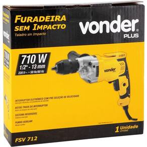 Possui interruptor eletrônico com pré-seleção de velocidade para controle da rotação da máquina, possibilitando iniciar um furo com uma rotação baixa e aumentar gradativamente de acordo com a necessidade de perfuração. Conta também com sistema reversível, que facilita a retirada da broca caso ela trave durante a perfuração. Possui botão trava do interruptor para trabalhos contínuos, punho auxiliar e motor com dupla isolação, que garante maior segurança.