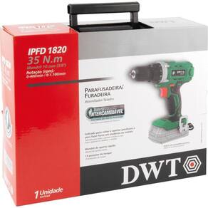 Marca: DWTConteúdo da Embalagem:1 Parafusadeira/furadeira a bateriaDestaques e diferenciais:Este equipamento utiliza um modelo de bateria que pode ser intercambiável não acompanha , ou seja, uma bateria que é compatível com outros modelos de ferramentas a bateria DWT. Por isso, em sua próxima compra de ferramenta a bateria DWT, procure um modelo que comece com a referência I, ou que esteja identificado com o selo Bateria Intercambiável DWT. Desta forma, você garante modelos mais econômicos, sem a necessidade de aquisição de novas baterias e carregadores para uso em seu equipamento. Compacta e prática de usar. Possui regulagem de torque em 19 posições, adequando-se à necessidade de aperto de acordo com a dureza do material e 1 posição para perfuração, LED para melhor visibilidade do local de trabalho, cabo com revestimento emborrachado, proporcionando maior conforto ao operador. Conta também com mandril de aperto rápido, que facilita a troca rápida do acessório.Aplicações e dicas de uso:Indicada para soltar e apertar parafusos e para fazer furos em madeiras ou metais. Não indicada para uso em concreto. Baterias indicadas: 60.14.180.200 2,0 Ah e 60.14.180.400 4,0 Ah . Carregadores indicados: 60.14.180.600 carregamento rápido e 60.14.180.500 carregamento convencional .Características Técnicas:Bateria: Não acompanha Capacidade do mandril: 3/8 - 10 mm Rotação da furadeira/parafusadeira: 0 - 400/min / 0 - 1.100/min Tensão do carregador de bateria: Não acompanha Ean: 7893946572020