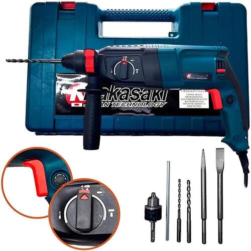 Furadeira de Impacto 220v cabeça de ferro Furadeira Cabeça de Ferro Furadeira de Impacto Mandril de 1/2 Parafusadeira Reversivel 820w + Maleta Kit Completo A Furadeira de Impacto Marca: NAKASAKI é uma ferramenta leve e prática. Com função de impacto e guia de profundidade, auxilia no dia a dia das pessoas que buscam realizar as tarefas de manutenção de casa com comodidade e rapidez. Seu punho lateral com rotação 360 garante mais conforto e precisão nas atividades manuais. A furadeira ainda conta com controle de velocidade reversível e botão trava gatilho para serviços de perfuração de madeiras, metais e concreto. Características: - Alta precisão na broca - Potente motor com 820W - Punho com design ergonômico, mais Conforto para seu dia a dia. - Velocidade Variável - Auto Reverso Especificações: - Marca: NAKASAKI - Modelo: NK6013 - Tensão: 127v e 220v não é bivolt - Potência : 820W - Mandril : 13mm - Impactos por min.: 0 - 48.000 IPM - Rotações por min.: 0 - 3000 RPM - Capacidades: Diâmetro de Perfuração Concreto - 13mm / Aço - 13mm / Madeira - 20mm - Dimensões C x L x A : 31x29x9cm - Peso : 2,55kg - Cabo de Energia : 2m ACOMPANHA: 25PÇS - 1 Punho - 1 Regua de Profundidade - 1 Chave mandril - 8 Soquetes 5mm - 12mm - 2 Pontas Fendas - 2 Pontas Phillips - 1 Ponta Universal - 1 Extensor para Furadeira - 1 Caixinha com Parafusos e Buchas - 8 Brocas variadas de aço carbono - 1 Manual - 1 Maleta Obs: No ato da compra escolha a voltagem se 110v ou 220v. do vendedor: 3 meses