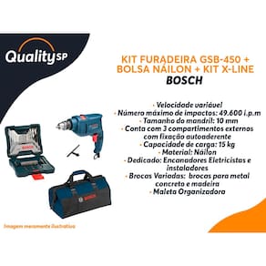 Kit Furadeira Bosch Impacto Madeira Concreto Aço 450w 220V 10mm + Bolsa De Transporte + Broca Bosch