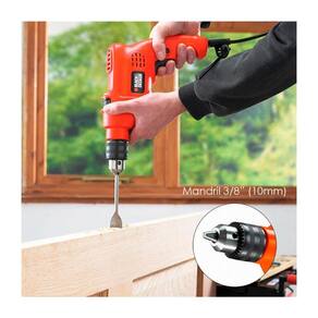 Furadeira de Impacto 3/8" 560W 220V TM500B2 Black And Decker A furadeira de impacto da Black And Decker é essencial tanto para serviços profissionais quanto para serviços de reparos domésticos. Uma ferramenta indispensável quando o assunto é qualidade e acabamento. Possui modo de perfuração ou com impacto, com motor de 560W ideal para aplicações em alvenaria, madeira e metal, ação impacto para trabalhar com mais eficiência em alvenaria e azulejos, trava de gatilho para uso contínuo e seletor de impacto ou rotação oferece um ótimo rendimento em grande variedade de materiais. Por que a furadeira de impacto da Black And Decker é ideal para me acompanhar no trabalho? Porque ela dispõe de praticidade, qualidade e está apta para atender suas expectativas, ideal para aplicações em alvenaria, madeira e metal, traz mais precisão no trabalho com acabamento de qualidade, resistente e de alta durabilidade. Sem contar com empunhadura com desenho ergonômico para comodidade do usuário. Especificações sobre o produto: Marca: Black and Decker Garantia: 1 ano de garantia Modelo: TM500B2 Mandril: 3/8" (10mm) Voltagem: 220V Potência: 560W Velocidade: 2800/min (rpm) Impacto: 45000 ipm Ação impacto: Sim Capacidade de perfuração em metal: 3/8" (10mm) Capacidade de perfuração em alvenaria: 3/8" (10mm) Capacidade de perfuração em madeira: 1" (25mm) Itens Inclusos: 01 Furadeira de impacto 3/8" (10mm) 01 Chave de mandril O que você está esperando? A furadeira de impacto Black and Decker possui a praticidade, qualidade e versatilidade que você precisa, além de ser super útil para profissionais da área e para reparos caseiros.