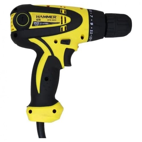 Parafusadeira e Furadeira Elétrica Hammer 300W - GYPFE300 Parafusadeira e Furadeira Elétrica 300W é indicada para fixar e soltar parafusos e perfurações em aço, madeira e outros materiais. Possui controle de torque que pode ser aumentado progressivamente conforme a necessidade de perfuração e com sua empunhadura soft grip garantindo maior segurança ao operador. Características:Empunhadura soft grip19 Níves de torqueVelocidade Variável e ReversívelFaixa de perfuração: 0 - 10 mm Especificações:Tensão: 220VPotência: 300WRotação: 0 - 750 RPMCapacidade de perfuração: Aço: 6 mm madeira: 20 mmMandril: 3/8" (10mm) de Aperto RápidoComprimento do cabo: 1,85 m Garantia de Fábrica03 meses Referência de FábricaGYPFE300220