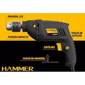 Ferramentas Hammer é tecnologia. Ideal para trabalhos domésticos a Furadeira de Impacto Hammer FI1000K possui trava de uso contínuo que permite a utilização da furadeira de maneira contínua e sem a necessidade de pressionar o gatilho. Com o botão de impacto possibilita que você fure materiais de diversas densidades.
