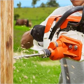 Aproveite toda a potência da sua motosserra com esta furadeira de alto rendimento e aumente sua produtividade sem precisar adquirir uma nova ferramenta elétrica.