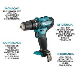 -esta é a furadeira/Parafusadeira de Impacto da Makita, uma supermáquina com tecnologia CXT. -ela faz parte da nova geração de 12Max, muito mais força e desempenho. -A recarga da bateria é muito rápida, apenas 22min. -você já conhece a campanha de Baterização da Makita São mais de 65 modelos de ferramentas Quem podem usar essa mesma bateria.