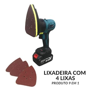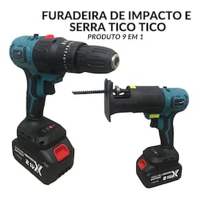 Especificações do produto: Produto 21v Produto portátil acompanha uma bateria recarregável Acompanha maleta Ferramenta 9 em 1: - furadeira de impacto - serra tico tico - soprador - cortador multifuncional - lixadeira acompanha 4 lixas - lavadora de alta pressão - ferramenta oscilante - motosserra - chave de fenda elétrica