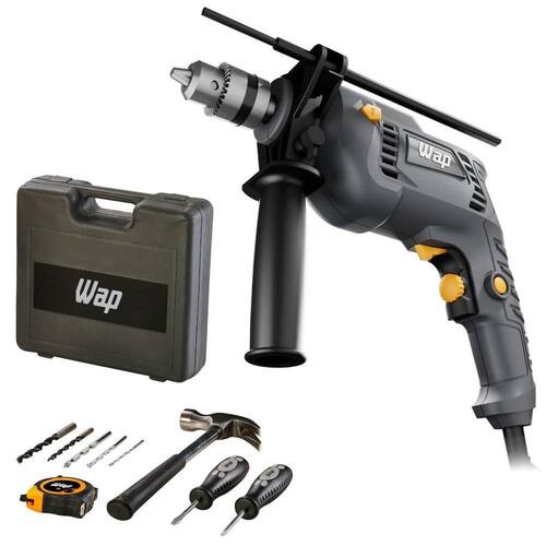Produto: Furadeira Parafusadeira de impacto 3/8" 700W com kit de acessórios - WF 700K10 Marca: Wap Voltagem: 110VDescrição: Garanta resultados de qualidade em seus projetos com uma ferramenta robusta e de qualidade. Ideal para atividades ocasionais, a Furadeira Parafusadeira de impacto 3/8" 700W com kit de acessórios WF 700K10 da Wap permite executar perfurações seguras e práticas, com ou sem impacto.