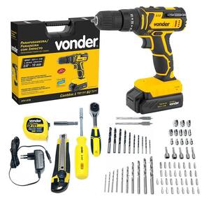 Produto: furadeira parafusadeira de impacto 3/8 a bateria 20v com 78 acessórios - pfv 078 marca: vonder voltagem: 110v/220vdescrição: a furadeira parafusadeira de impacto 3/8 a bateria 20v com 78 acessórios - pfv 078 da vonder é indicada para soltar e apertar parafusos de até 8 mm de diâmetro e fazer furos em madeiras ou metais na função sem impacto e em concreto na função com impacto. Tempo de carregamento da bateria: 3 a 5 horas.