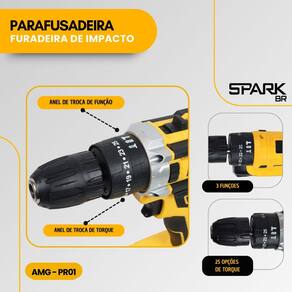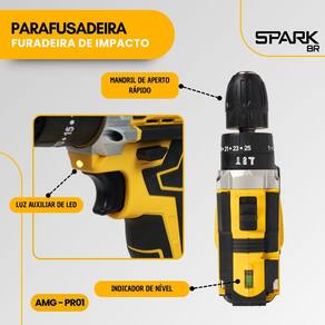 A Parafusadeira Furadeira SparkBr AMG-PR01 é a ferramenta ideal para quem busca potência, praticidade e versatilidade em um só equipamento. Com 2 baterias recarregáveis de 21V, mandril de aperto rápido, função martelete e maleta completa de acessórios, ela garante alta performance em serviços de montagem, perfuração e fixação – seja em casa, na oficina ou no trabalho profissional. Dica importante: Antes do primeiro uso, carregue a bateria por 6 horas completas para garantir o desempenho ideal. ________________________________________ Benefícios que fazem a diferença: • 3 em 1: Parafusadeira, furadeira e martelete; • Sem fio e recarregável: liberdade total de movimento; • 2 baterias 21V incluídas: trabalhe por mais tempo sem interrupções; • Torque ajustável (18 + 3 opções): ideal para diferentes materiais; • Design compacto: alcance áreas de difícil acesso com facilidade; • Mandril com aperto rápido: trocas de brocas e bits sem ferramentas. ________________________________________ Especificações Técnicas: • Rotação máxima: 3500 RPM; • Baterias: 2 baterias 21V – 1500Ah (Íons de lítio); • Carregamento: de 2 a 4 horas; • Funções: Perfuração, Perfuração com impacto e Parafusadeira; • Torque: 18 + 3 opções; • Velocidades: 2 tipos; • Mandril: Aperto rápido; • Tensão: Bivolt (110V/220V); • Frequência: 50Hz / 60Hz; • Dimensões: 21 x 7 x 21 cm; • Modelo: AMG-PR01; • Peso: Leve e fácil de manusear. ________________________________________ Itens Inclusos no Kit Completo: • 1x Parafusadeira AMG-PR01; • 2x Baterias 21V; • 1x Maleta resistente para transporte; • 1x Carregador Bivolt; • 1x Conector flexível; • 6x Bits; • 6x Brocas; • 10x Soquetes; • 1x Adaptador de soquetes; • 1x Adaptador de bits. ________________________________________ Ideal para: montagens, reformas, instalações, marcenaria, uso doméstico e profissional.