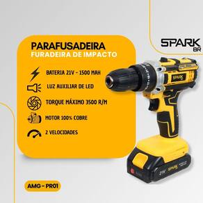 Parafusadeira Furadeira Sem Fio SparkBr 21V – Kit Completo com 2 Baterias, Maleta e Acessórios