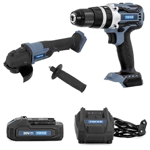 Furadeira Parafusadeira TRB0010, Esmerilhadeira TRB0003, Bateria 2,0 Ah e Carregador de Bateria 2,4 Ah Torkz, 20 Volts