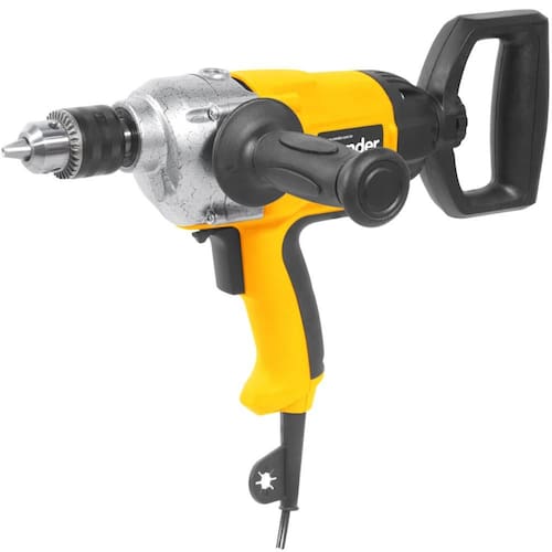 Possui cabo com revestimento emborrachado, que confere maior conforto para o operador. Conta com sistema reversível, que facilita a retirada da broca caso ela trave durante a perfuração, punho auxiliar lateral com três posições de fixação e punho auxiliar traseiro. Indicada para metais, madeiras, entre outros. Deve ser utilizada com os acessórios adequados. Não indicada para furar concreto.
