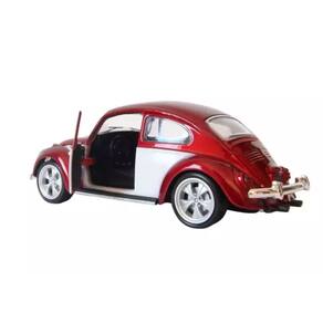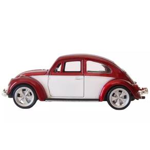 Modelo: Fusca Beetle Bicolor C/ Rodas EsportivasMarca: KinsmartEscala: 1:32Material: Metal e plasticoPneus: BorrachaDimensoes: 12,5 cm compx 5 cm larg.x 3,5 cm altura.Abre Portas: SimAbre Capo: SimAbre Porta-malas: Nao