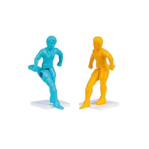 Os jogadores possuem pernas articuladas que chutam de verdade, e o goleiro com haste para defesas!