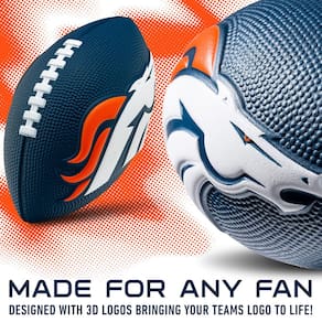Franklin Sports NFL Denver Broncos Futebol Americano – Espuma de futebol infantil – Soft Football – Tamanho mini – Perfeito para dias de jogo – Logotipos 3D de 21,5 cm - Futebol de espuma Denver Broncos: esta bola de futebol americano exclusiva de espuma de poliuretano é diferente de qualquer outra bola de futebol disponível, é especialmente projetada com logotipos 3D dando vida ao logotipo de seus times - Tamanho perfeito: esta mini bola de futebol americano de 21,5 cm tem o tamanho ideal para caber em mãos de jogadores jovens para que seu futuro campeão possa jogar por horas! - Estrutura de espuma macia: feita de 100% espuma de poliuretano, esta bola é leve e promove confiança em crianças de todas as idades para se envolverem no jogo! - Apresenta logotipos 3D: cada logotipo da equipe é especialmente em relevo, dando a cada equipe sua própria aparência e sensação únicas para que você possa mostrar seu espírito de equipe nas festas, no quintal, na praia ou no churrasco do seu bairro - Oficial da NFL: esta bola de futebol americano é oficialmente licenciada pela NFL, com logotipos e cores específicos da equipe!