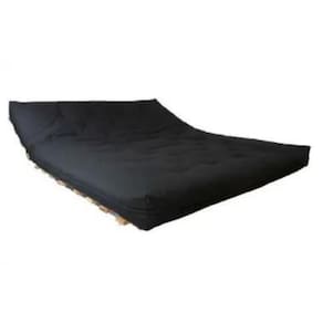 O colchão futon casal é fabricado em tecido de alta qualidade em sarja, seu enchimento é de mantas de algodão natural, manta fibra siliconada estruturado por espuma ortopédica D28. Possui amarras nas extremidades, a estrutura é produzida em madeira maciça nobre de grápia natural.