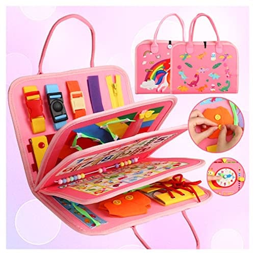 fyjous Busy Board para 1 ano, brinquedos Montessori Busy Board para crianças de 1 2 a 3 4 anos, brinquedos sensoriais, livro tranquilo para meninas, atividade educacional, brinquedos de viagem de carro de avião, aniversário