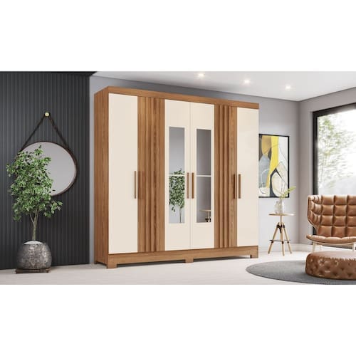 GUARDA-ROUPA B367 DIFERENCIAIS cabideiros e calceiros de madeira revestido Gavetas com corrediças metálicas Pés em ABS inclusos Porta com aplique ripado Puxadores de MDF revestidos TAMANHO A: 2150 X L: 2000 X P: 475 MM Grantia: 90 dias. Montagem: Montagem, desmontagem e outras instalações serão de responsabilidade do cliente. Não nos responsabilizamos, no ato da entrega, por subir escadas/elevadores ou pelo transporte por guincho em apartamentos. Eventuais despesas são de responsabilidade do comprador; Observações importantes: A tonalidade da cor do produto pode variar de acordo com a sua tela, a iluminação do ambiente ou sua percepção visual. Lembrando que são fotos ilustrativas tratadas em estúdios podendo haver pequena diferença nas cores. A montagem será de responsabilidade do comprador; Não nos responsabilizamos, no ato da entrega, por subir escadas/elevadores ou transporte por guincho em apartamentos. Eventuais despesas são de responsabilidade do comprador; Confira as dimensões deste produto e certifique-se de que passará normalmente por supostos elevadores, portas, escadas e/ou corredores de sua residência; Para mais informações, acesse nossa Central de Atendimento. Marca: LM DECOR
