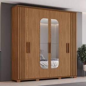 O Guarda-roupa Ávila é a combinação perfeita entre beleza, resistência e organização. Desenvolvido para atender quem precisa de espaço e sofisticação no quarto, ele possui 6 portas, sendo 2 com elegantes apliques ripados, além de 4 gavetas com corrediças telescópicas que garantem suavidade na abertura e fechamento.