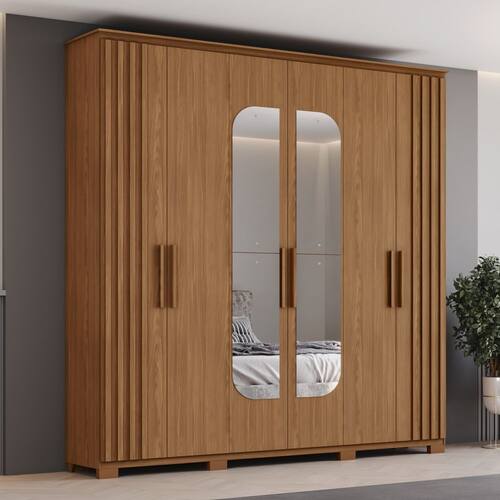 Roupeiro Ávila 6 Portas e 4 Gavetas com Apliques Ripados – Guarda-roupa Casal com Design Moderno, Espaçoso e Funcional