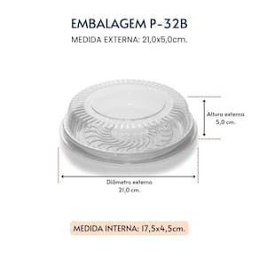 Sua função principal é armazenar bolos, doces e tortas. Profissionalizando sua produção. Fabricado com material pet de alta qualidade é resistente, higiênico e possui um ótimo acabamento estético. É bastante utilizado em confeitarias e lojas de bolo e a tampa adere muito bem a base deixando a embalagem segura para transporte.