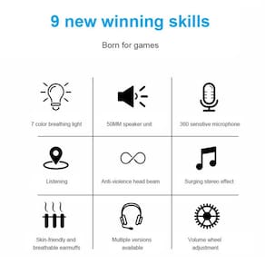 1. O design leve: confortável e fácil de usar, então você dificilmente pode sentir o peso de sua cabeça ao jogar jogos, e você pode jogar facilmente 2. O design de protetores auriculares totalmente fechados pode isolar o ruído externo de forma eficaz e não machucará seus ouvidos por um longo tempo. 3. Controle de volume de ajuste humanizado e conveniente, ajuste em tempo real, controle fácil. 4. Microfone de redução de ruído, alta sensibilidade do microfone omnidirecional de redução de ruído, resposta de frequência mais ampla, pode reduzir muito o ruído de fundo. 5. Efeito de iluminação colorido: A luz LED de respiração de 7 cores lhe trará jogos mais emocionantes e atmosfera musical.