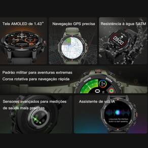 Relógio smartwatch unissex com design moderno e esportivo. Compatível com Android e iOS, oferece monitoramento fitness, notificações em tempo real, conectividade Bluetooth e é à prova d'água (IP67). Ideal para academia, corrida e uso diário.Processador