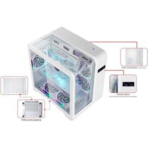 Gab aquario top vidro cyberpunk white w8ki c/display digital - Gabinete gamer cyberpunk white m.Atx - cg-w8ki Painel, parte superior e vidro lateral temperado 4mm Filtro anti-poeira inferior de encaixe modelo gaveta Hd áudio Manual de instrução Botão power, led, e reset Com display digital Gabinete gamer cyberpunk white m.Atx - cg-w8ki Especificações técnicas: Placa-mãe compatível: micro atx e itx Dimensões do chassi : aLP 365x270x370mm Dimensões do gabinete: aLP 380x280x375mm Altura da cpu cooler: até 157mm Placa de vídeo: até 280mm Slots de expansão: 04 Fontes de alimentação compatíveis: padrão atx Portas usb: 1 usb2.0 + 1 usb3.2gen1 typea Baias internas: 13.5+2x2.5 ou 32.5 Chassi 0,5mm Refrigeração: Traseira: 1 fan 120x120mm Vertical: 2 fans 120x120mm Inferior: 2 fans 120x120mm Compatível com water cooler de 120mm traseiro, 240mm inferior/interna vertical fans opcionais não acompanham o produto, devem ser adquiridos separadamente Embalagem: Dimensões cxlxa : 445x345x460mm Quantidade: 01 peça por caixa Peso líquido: 5,2kg Peso bruto: 6,5kg Características gerais do produto: Material: metal vidro : 90 Marca: Não Informado Ean: 7908347911610