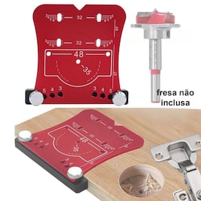 Gabarito de Dobradiça Caneco 35mm para Broca Forstner Anodizado Dremax Permite perfurar as dobradiças caneco 35mm de armários com precisão total, pois ajuda a medir a localização do furo da dobradiça. - Marca: Dremax - Referência: GAB010 - Dimensões: 85 x 80 x 12mm - Indicado para marcação de furos para instalar dobradiças tipo caneco de 35mm - Fabricado em liga de alumínio - Superfície anodizada, com alta dureza superficial e resistência ao desgaste, o que ajuda a manter a precisão da escala - Projetado para instalar dobradiças - Gabarito ideal para a fixação correta de suas dobradiças, vai te auxiliar muito a instalar as dobradiças local correto - : 90 dias Marca: Não Informado