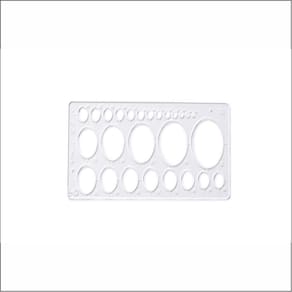 Gabarito com 26 elipses de 40 graus com raios de 2mm á 50mm. Acrílico transparente. Características : Espessura : 2mm(padrão desenho técnico) Adicionas : sem chanfro e com marcações Marca : fenix