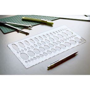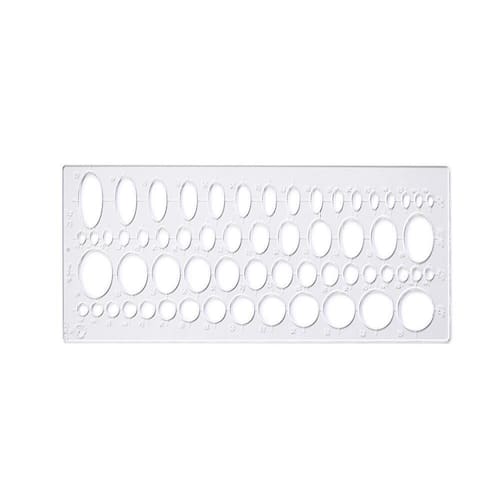 Gabarito de elipses em milímetros - contém 60 elipses em 4 graus 60,45, 35/16 e 25 Características : Espessura : 2mm padrão desenho técnico Adicionas : sem chanfro e com marcações Marca : fenix